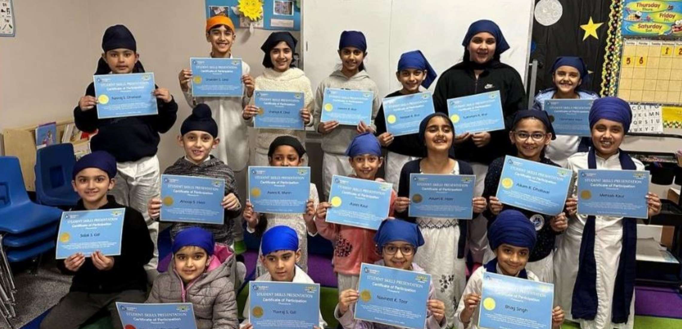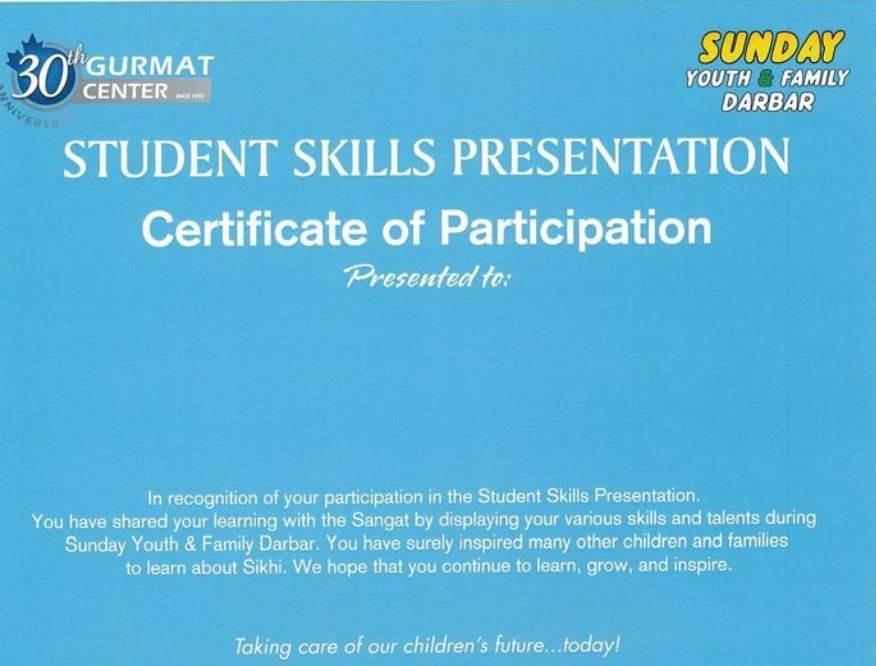 On March 5, Gurmat Center launched a new initiative called ‘Student Skills Presentation!’ This is an opportunity for our students to showcase their skills. Each and every student receives a certificate to recognize their hard work and skills. The first class to present was Monday Punjabi level 1B. This class shared the Gurmukhi letters, numbers up to 30, and the Guru Sahib names.