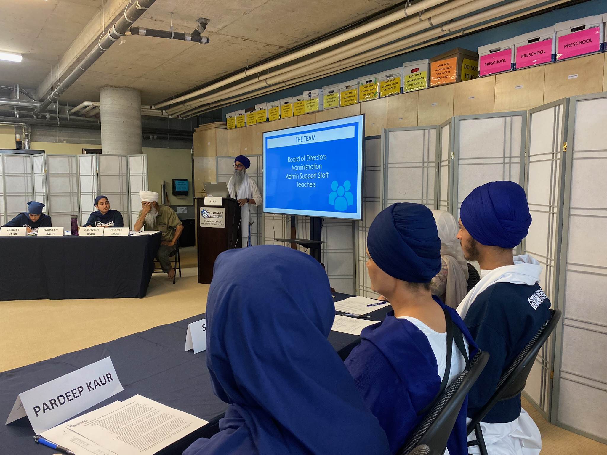 A highly productive school start staff meeting was recently held, bringing together this exceptional group of sevadars that do seva in various departments including Punjabi, Sikhs Studies, Gatka, and the Gurmat Office. This meeting provided a valuable opportunity for staff members to reconnect and engage in discussions related to the current school year.