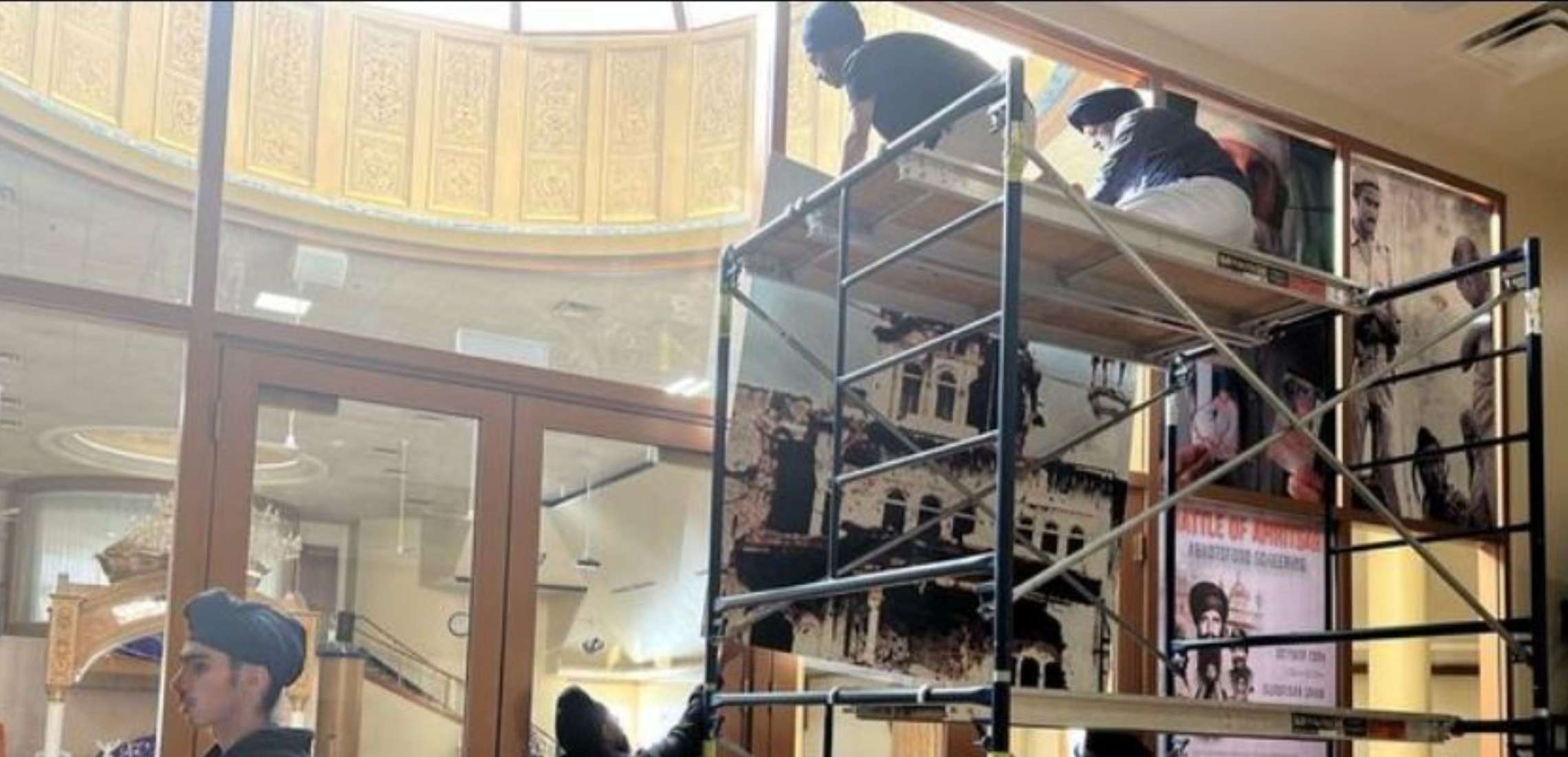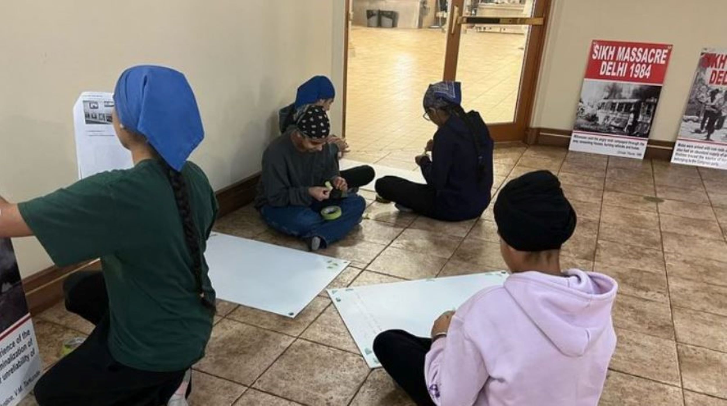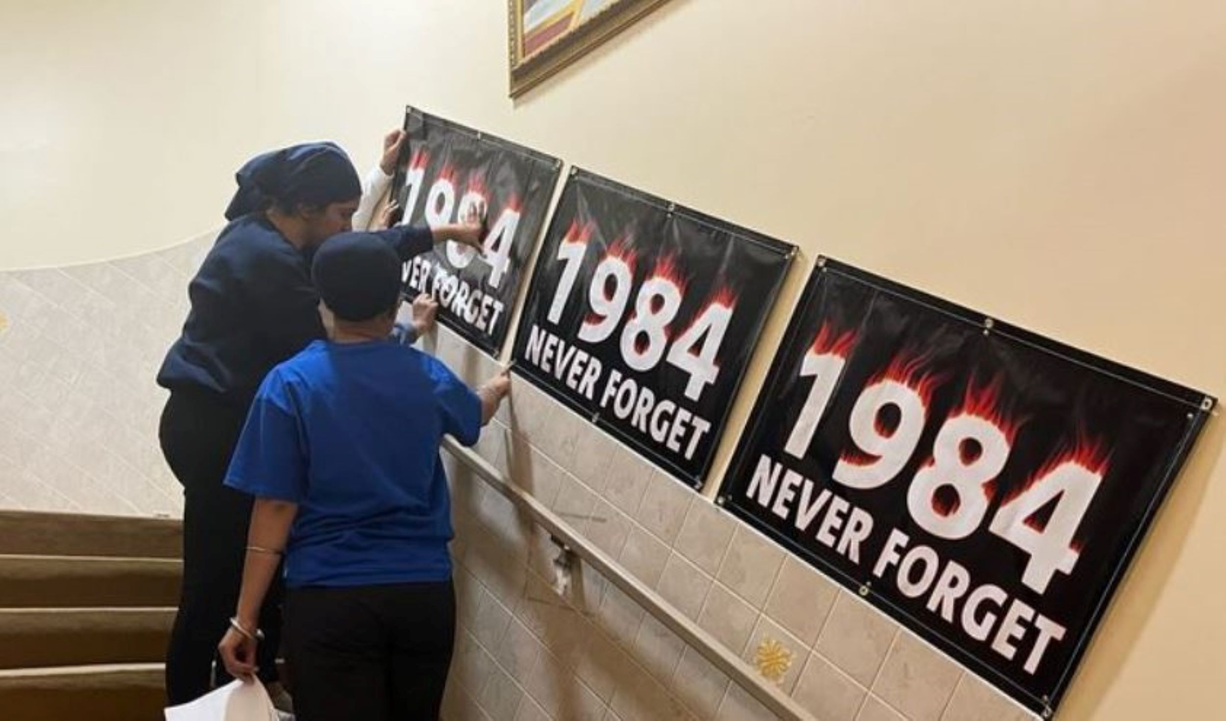 Sevadars came together to set up the Gurdwara Sahib for the Shaheedi Smagam. Sevadars put up posters and banners all around the Gurdwara Sahib. These posters and banners were set up to commemorate the countless Shaheeds of 1984.