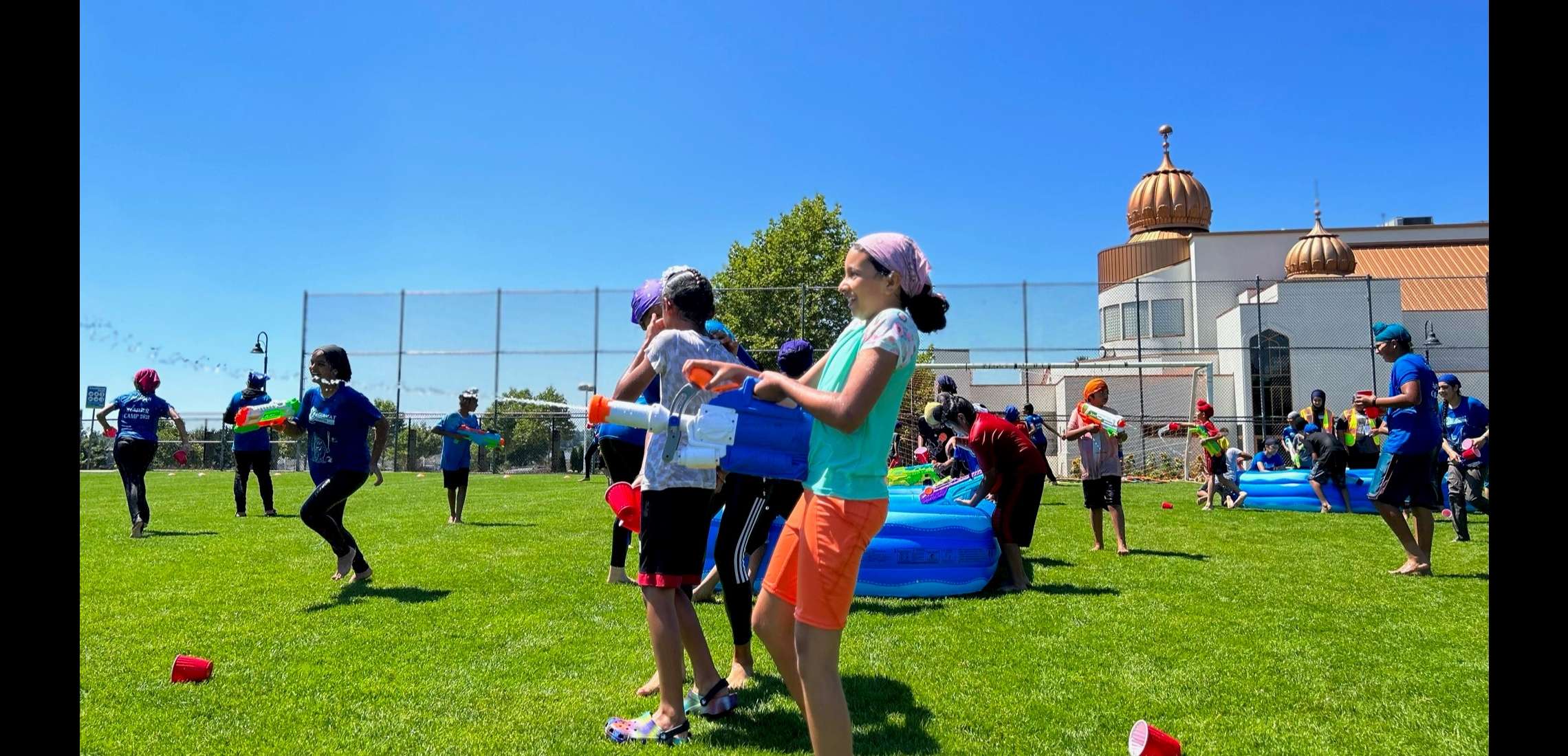The final two days of session 1 ended off with super fun special days! On day 8, campers participated in water day in which they navigated through a variety of water day stations. Water day concluded with a giant water fight involving campers, sevadars, and teachers! The last day of camp started with Sports Day, where campers took part in an assortment of sports & games. Afterwards, campers watched an inspirational movie about Bhai Taru Singh Jee! At the end of the day, campers got the chance to say goodbye to Babbu lion!
